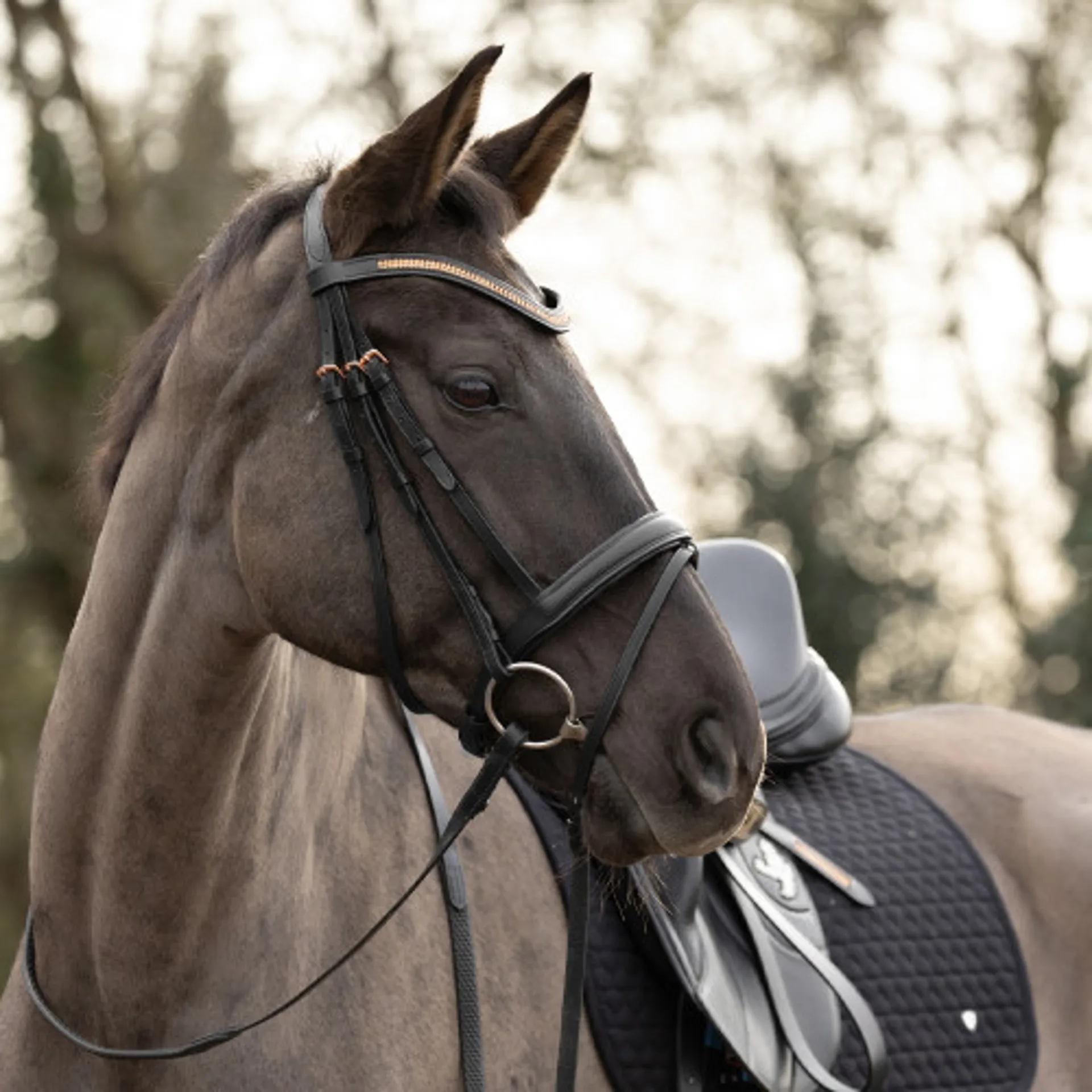 Question(s) answered about Hy Equestrian Rosciano Rose Gold Bridle - Black